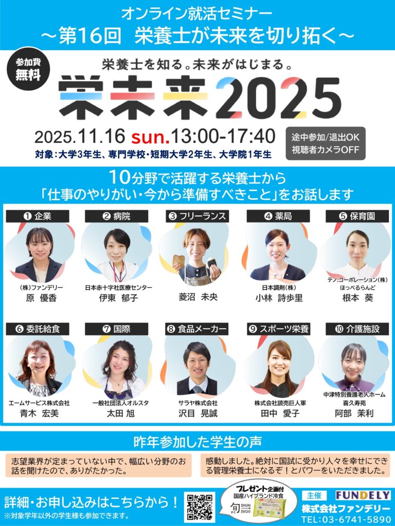 今回は、栄養学生向けのオンライン就活セミナーのご案内です。
